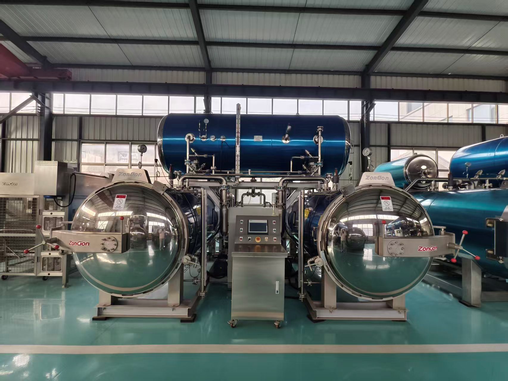 Its primary advantages are high efficiency and energy savings. Utilizing one heating system for two sterilization stations reduces initial equipment investment and floor space. The circulation and reuse of hot water significantly lower steam and water consumption.