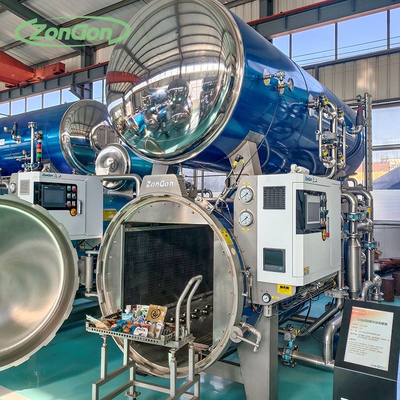 The main applicable categories include: vacuum-packed meat products (marinated food, ham, sausage), bean products (tofu, dried tofu), egg products (marinated eggs, salted duck eggs); flexible canned foods (bagged porridge, sauces, soup-based products); bottled and canned foods (fruit cans, vegetable cans, condiments); as well as prepared dishes and quick-frozen prepared foods. With a double-layer structure for temperature and pressure control, it ensures uniform sterilization, protects packaging, and is especially ideal for heat-sensitive, easily deformable flexible packages and products in glass or metal containers.