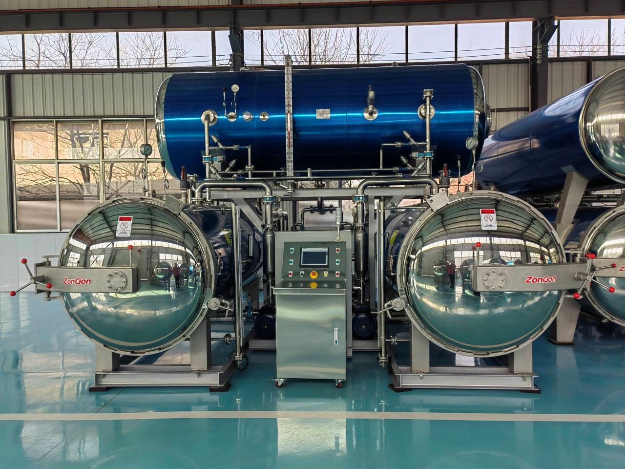 The one-and-two-water immersion sterilization retort is an efficient food processing equipment. It uses a centralized hot water system to connect two separate sterilization pots simultaneously, enabling them to work alternately or synchronously, thereby significantly enhancing production efficiency.