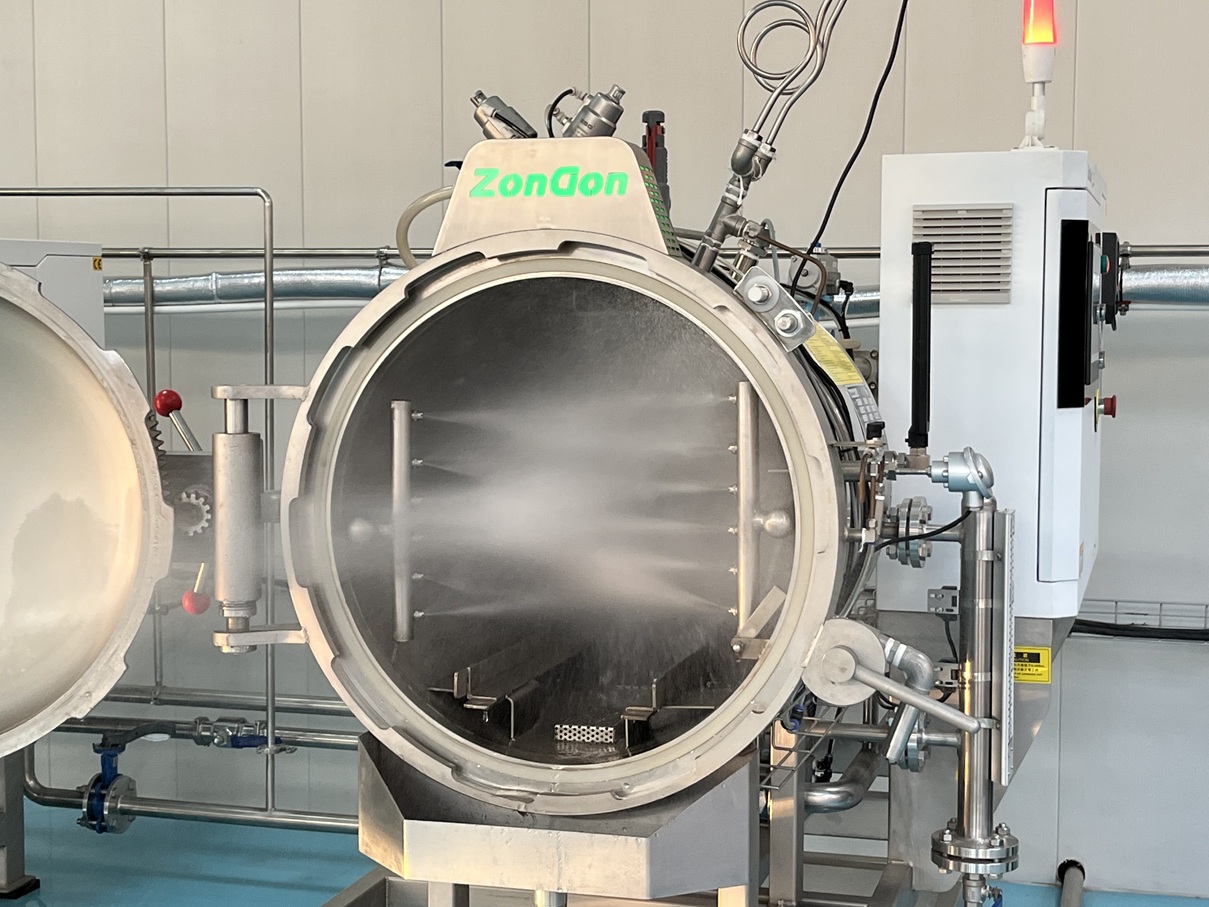 There are various spray methods for spray sterilization pots, including full spray, side spray, top spray, etc., but side spray is more suitable for bagged products. By customizing the plate size according to the thickness of the bag, it can effectively accommodate the water flow on both sides, thereby achieving good heat distribution and penetration.